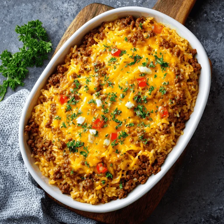 What I love most about this Cheese Ground Beef And Rice Casserole is its simplicity and the way each ingredient plays a crucial role in the dish. The ground beef is the heart of the casserole, offering a rich, savory flavor. Onions and garlic add depth, while the long-grain rice absorbs all those delicious juices, creating a perfect base. The cream of mushroom soup brings everything together with its creamy texture, and the cheddar cheese? Well, that’s the golden crown of this dish, melting into a bubbly, irresistible crust.