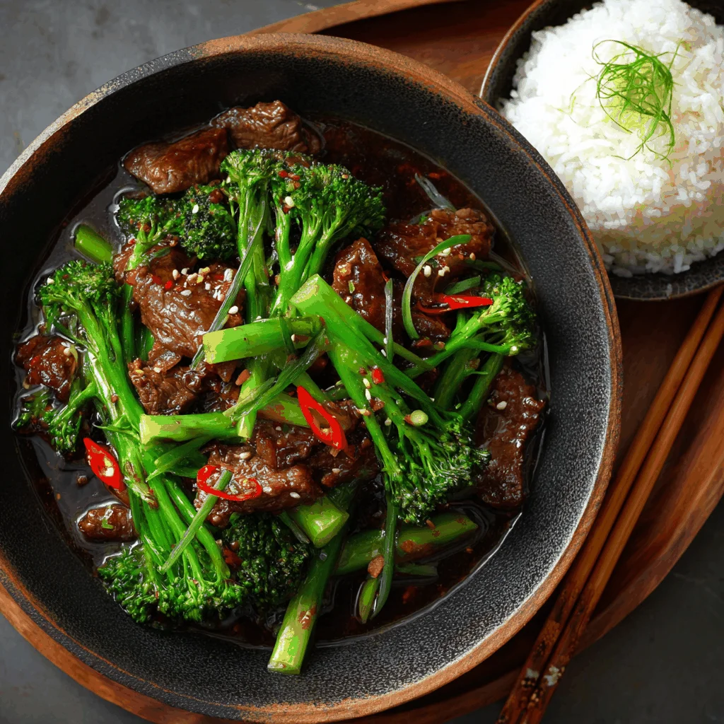 Ready to dive in? Let’s cook this up together! Start by slicing your beef thinly against the grain—this ensures each piece is melt-in-your-mouth tender. In a hot pan, sear the beef until it’s beautifully browned and set it aside. Next, toss in the broccoli, letting it cook until it’s vibrant and crisp-tender. Return the beef to the pan, pour over the sauce, and watch as everything bubbles away, creating a glossy, irresistible coating. And just like that, dinner is ready!