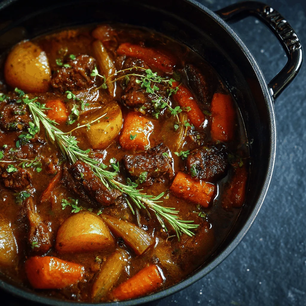 Every ingredient in this stew has a story to tell. From the tender beef to the earthy potatoes and carrots, each component is carefully chosen to bring warmth and comfort. The secret, though, lies in the blend of herbs and spices that give this stew its enchanting aroma. I love using fresh thyme and rosemary—picked up from a farmer’s market in Provence—to add a touch of earthiness. And don’t forget the splash of red wine, a little trick I learned from a charming Italian grandmother who swore by its ability to enhance the stew’s depth. You’ll find the full ingredient list with exact measurements in the recipe card below!