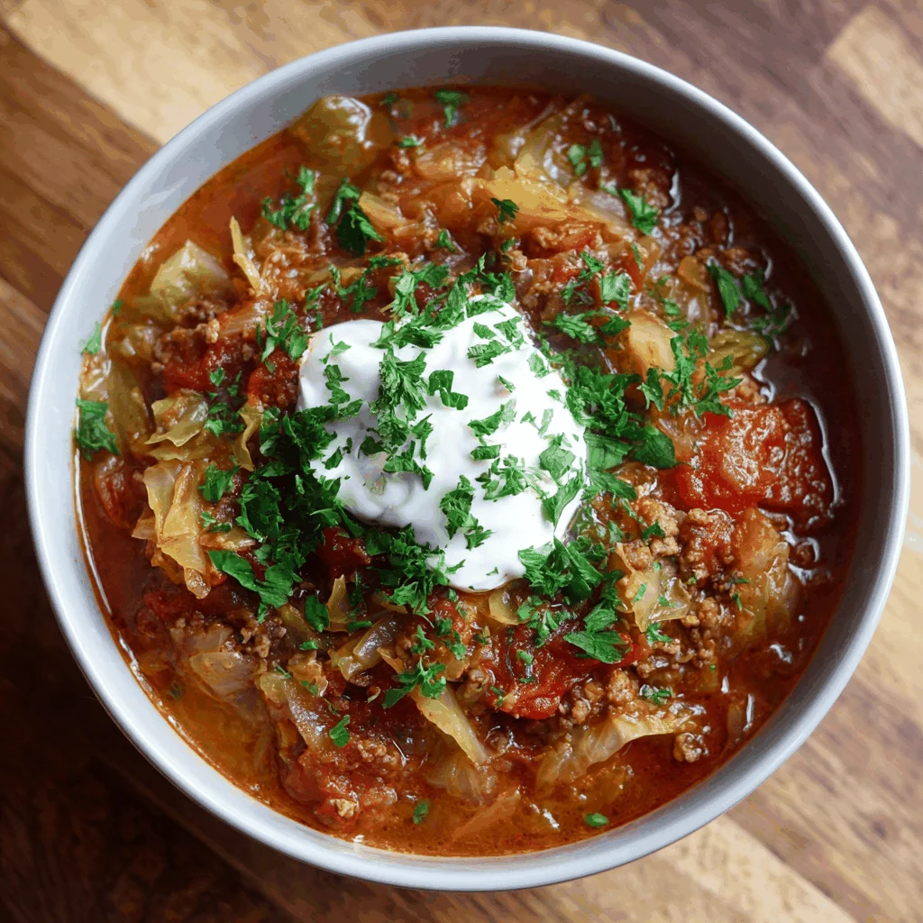 Let’s talk about the stars of this comforting soup. Ground beef or turkey forms the hearty base, bringing a rich, savory flavor. The cabbage, chopped into tender bites, is the heart of this dish—transforming from a humble vegetable into a silky, sweet delight as it cooks. Diced tomatoes add a touch of acidity, while beef broth deepens the flavors. And don’t get me started on the aroma of sautéed onions and garlic—it’s the kind of smell that draws people into the kitchen. You’ll find the full ingredient list with exact measurements in the recipe card below!