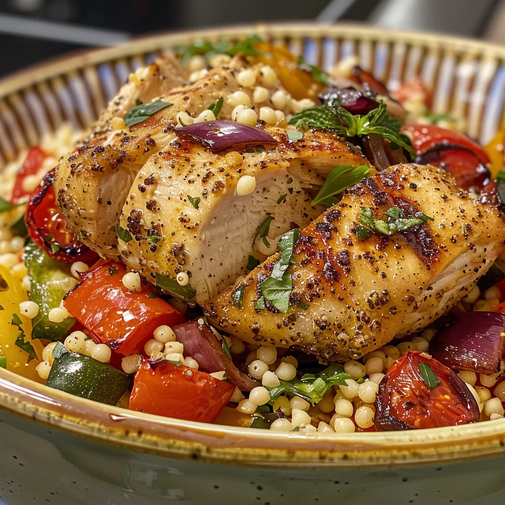 A flavorful and easy-to-make Mediterranean-inspired chicken couscous bowl perfect for a quick, satisfying meal.